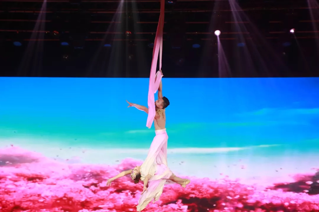 來自長沙銀行的特別嘉賓也為大家?guī)砹藷嵫序v的歌曲表演,晚會(huì)還特別邀請長春大學(xué)音樂學(xué)院的教授、著名的歌唱家張卓先生以及獲第38屆蒙特卡洛國際馬戲節(jié)“銀小丑獎(jiǎng)”的雜技團(tuán)隊(duì),分別為大家?guī)砹舜髿獍蹴绲母璩硌菀约绑@險(xiǎn)刺激的飛天綢吊雜技,將晚會(huì)氣氛推向了高潮。